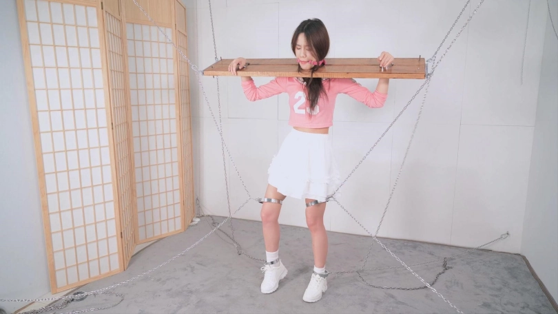 【撒琅制造】言妍木枷多重铁链固定放置--足球宝贝、棉袜、运动鞋、口球、TK、刺轮、电击