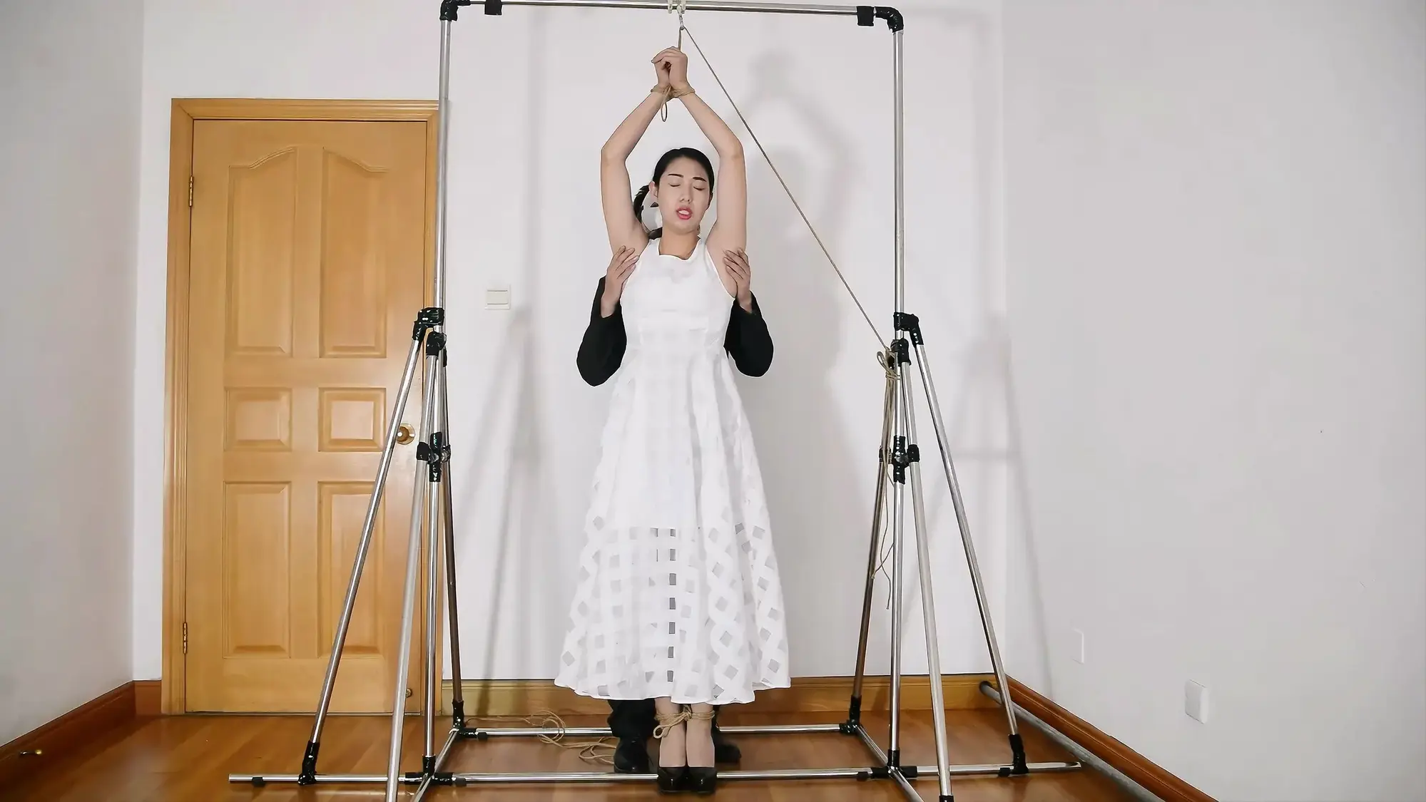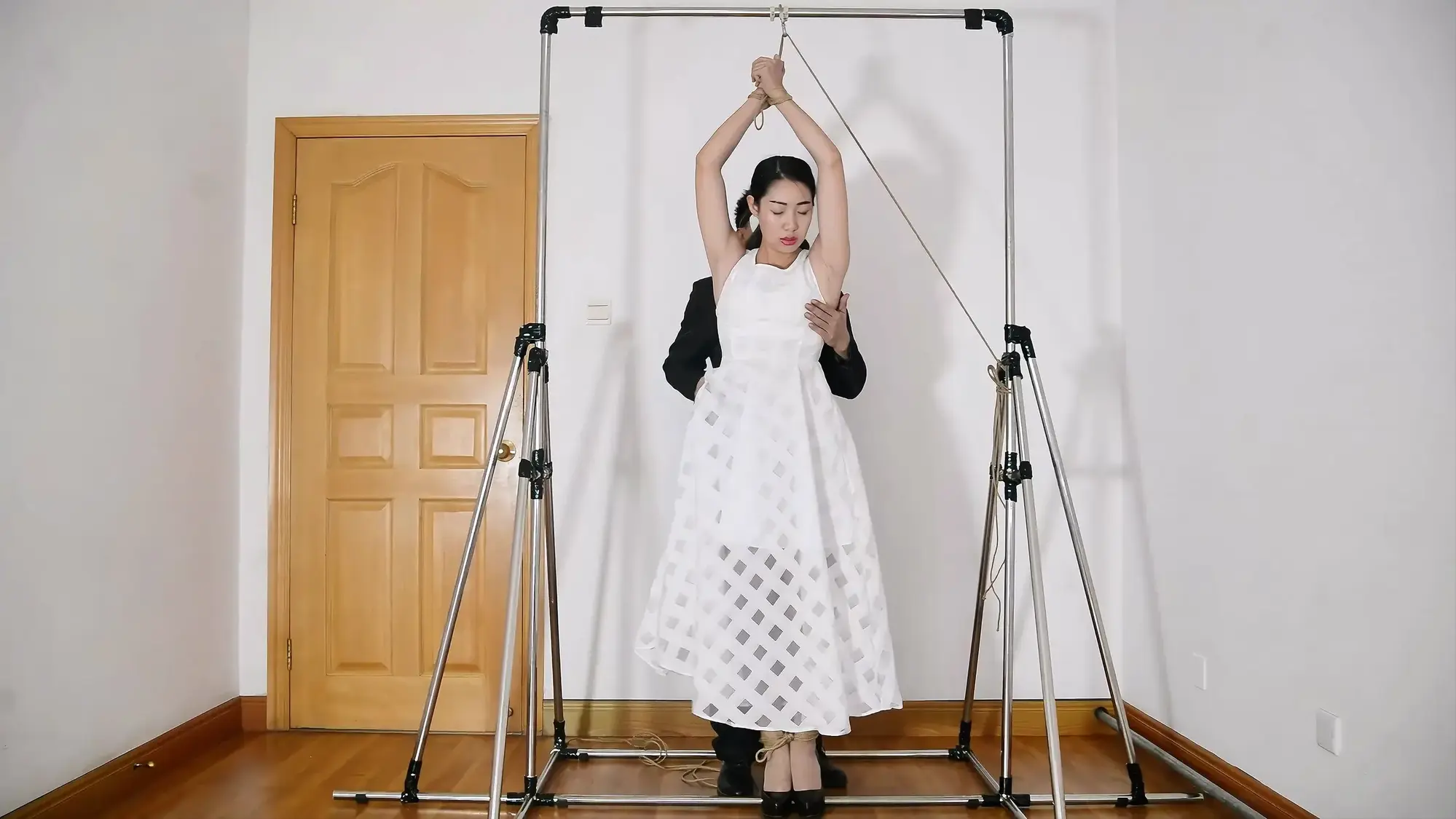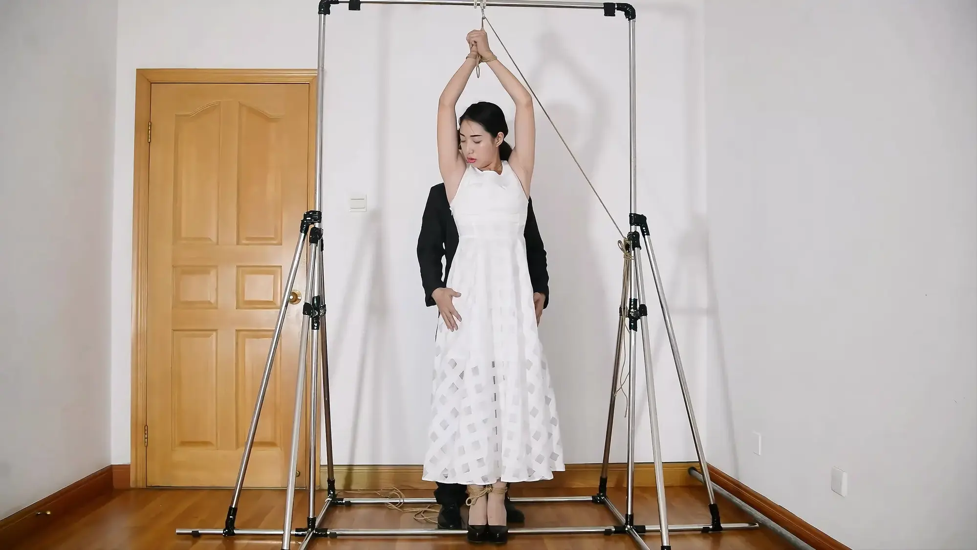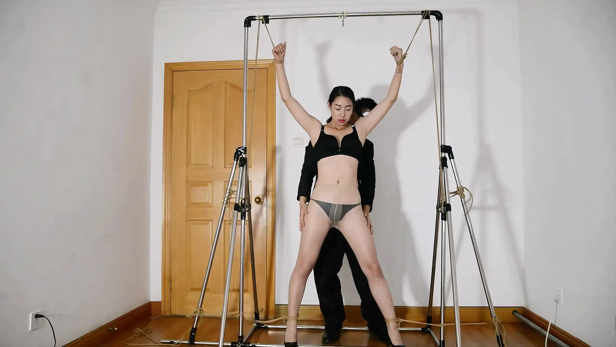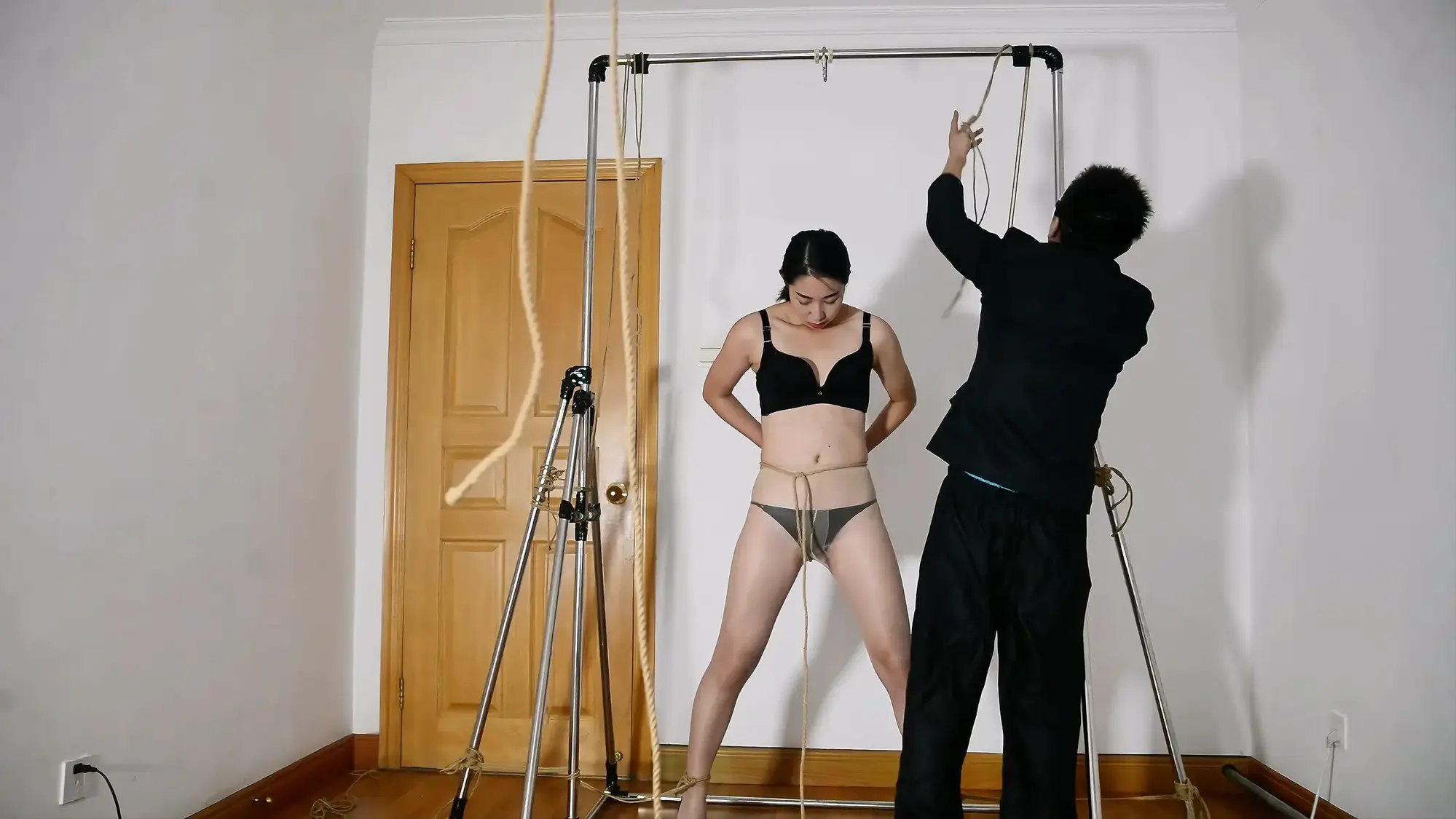 铁架开山三部曲的第二部,展示悬吊架,模特表现优异,有绳艺访谈感受,被捆绑着接吻,试图逃脱脱困,股绳和震动等,模特的声音代入感超强!