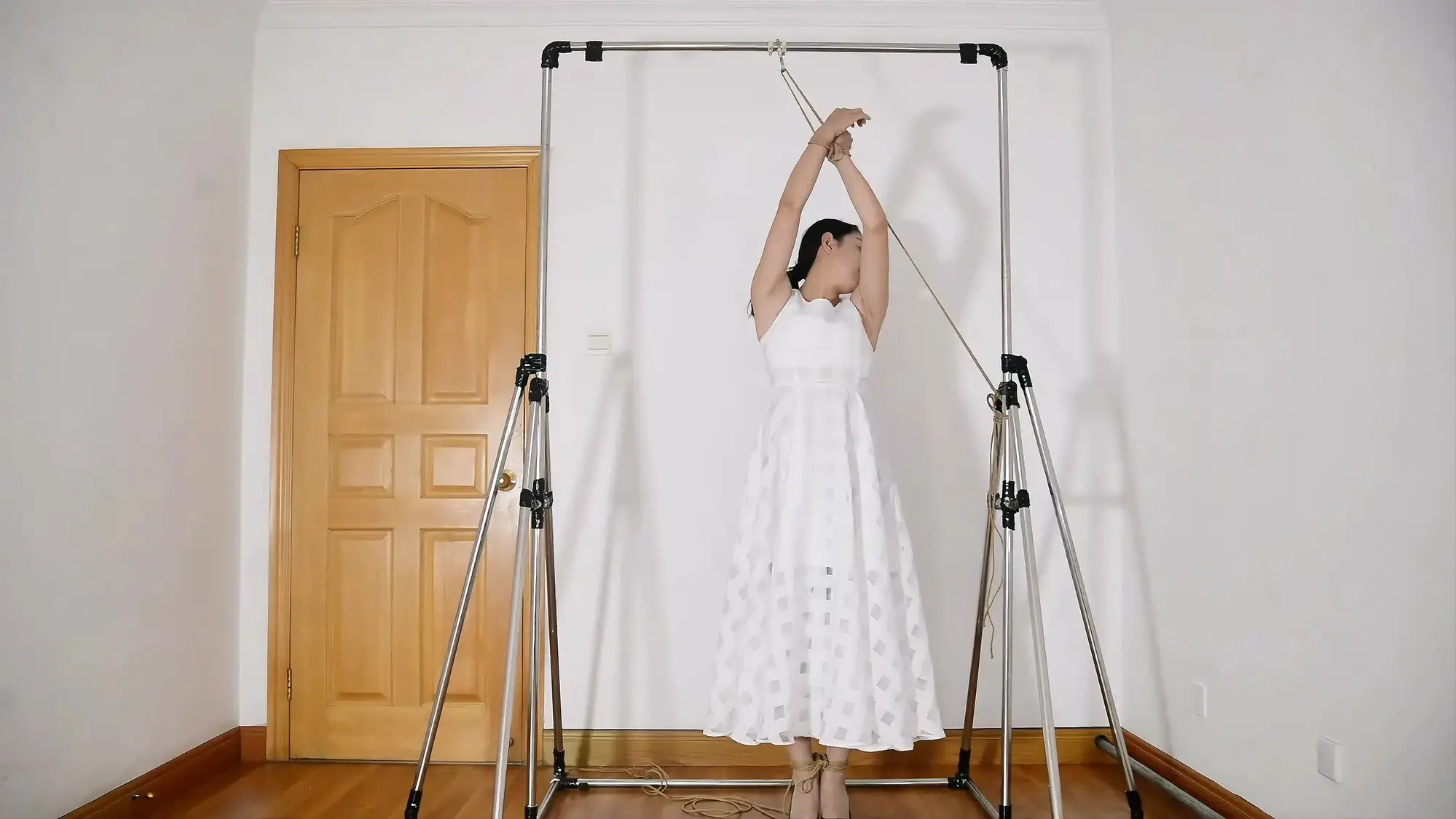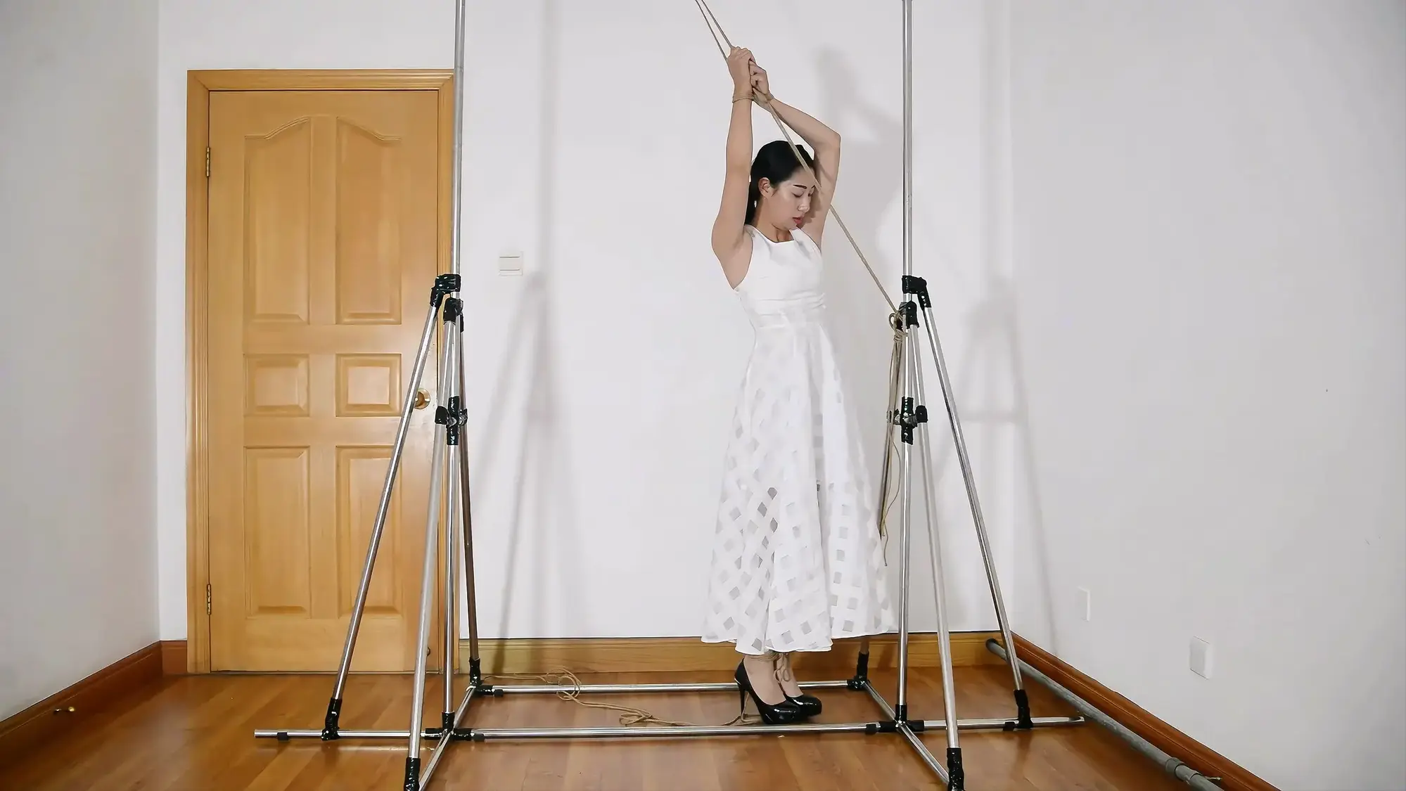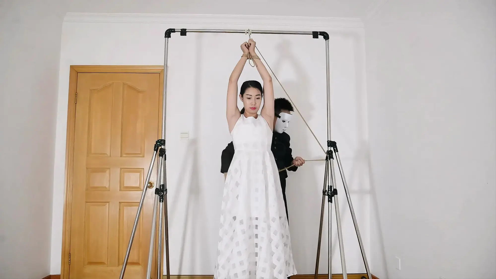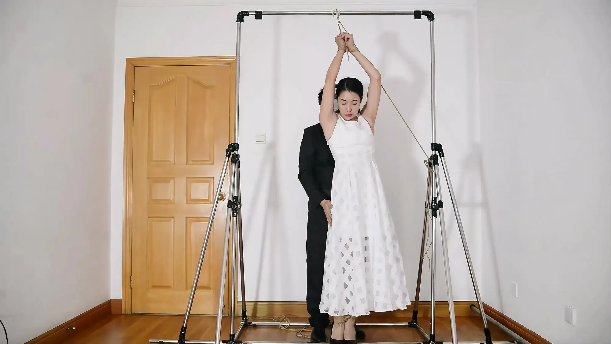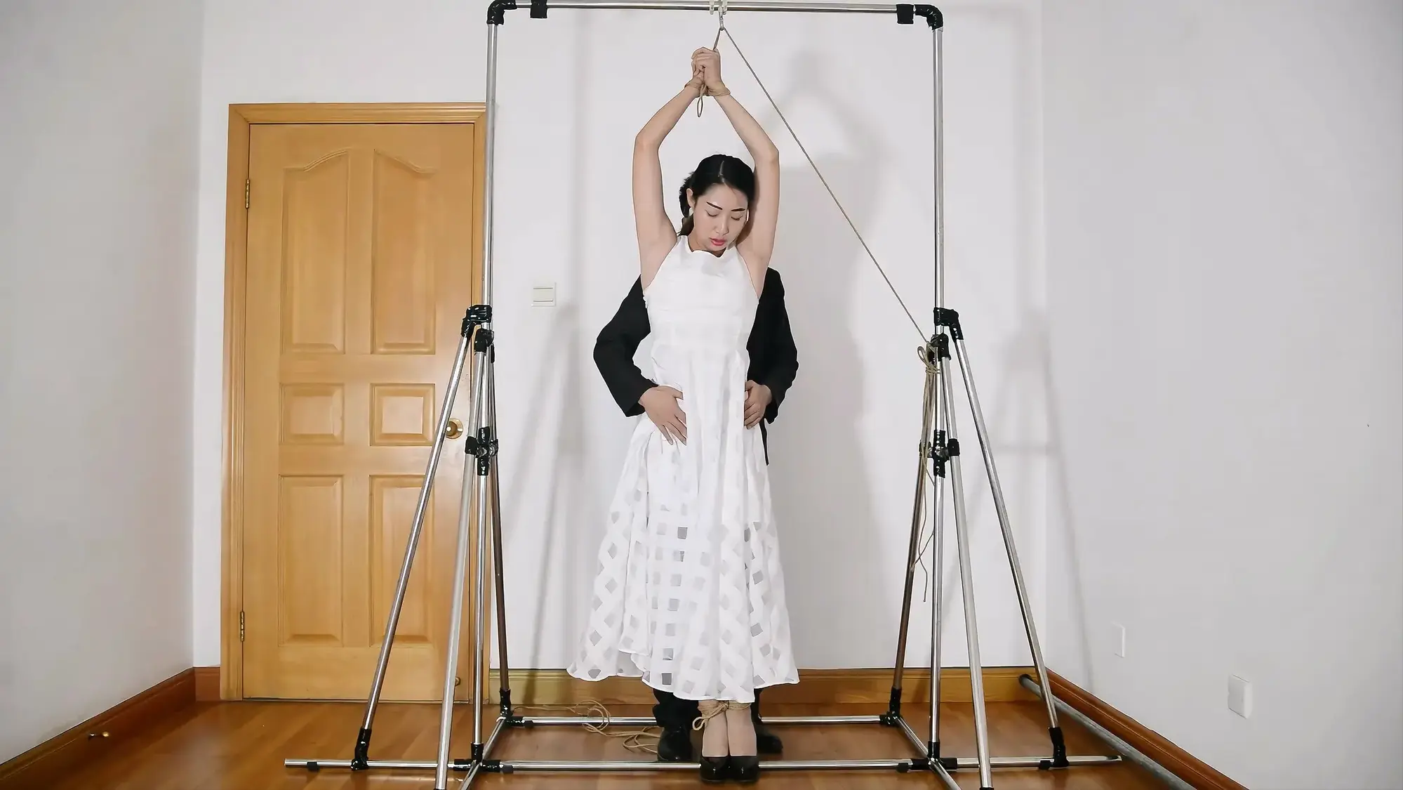 铁架开山三部曲的第二部,展示悬吊架,模特表现优异,有绳艺访谈感受,被捆绑着接吻,试图逃脱脱困,股绳和震动等,模特的声音代入感超强!