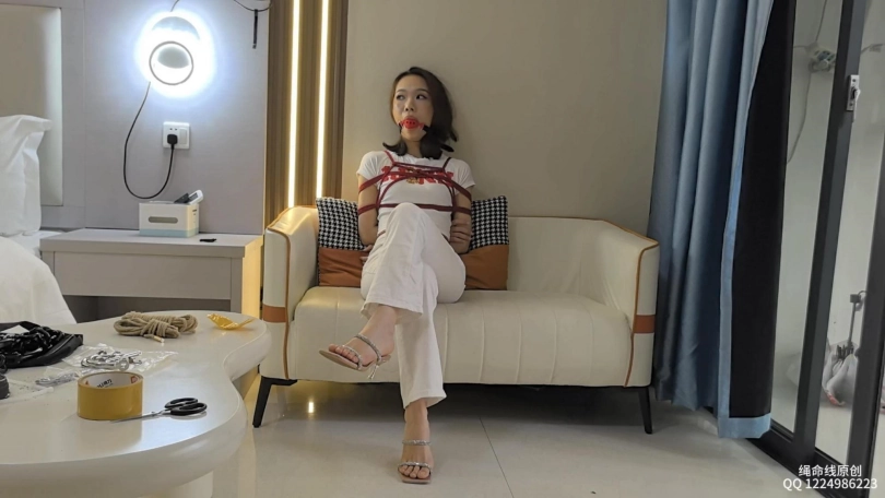 先给她把所有道具全部体验过去一遍,简单问了一下感受,妹子还是挺开朗的,没有拘束的感觉,配合度也高,就是戴口球的时候有点抵触,不过后面还是戴上了,这个妹子很适合拍剧情类的作品。