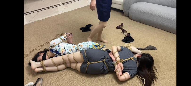 伊婷挣脱了捆绑,用同样的手段把盖盖也绑了起来并展开了报复。