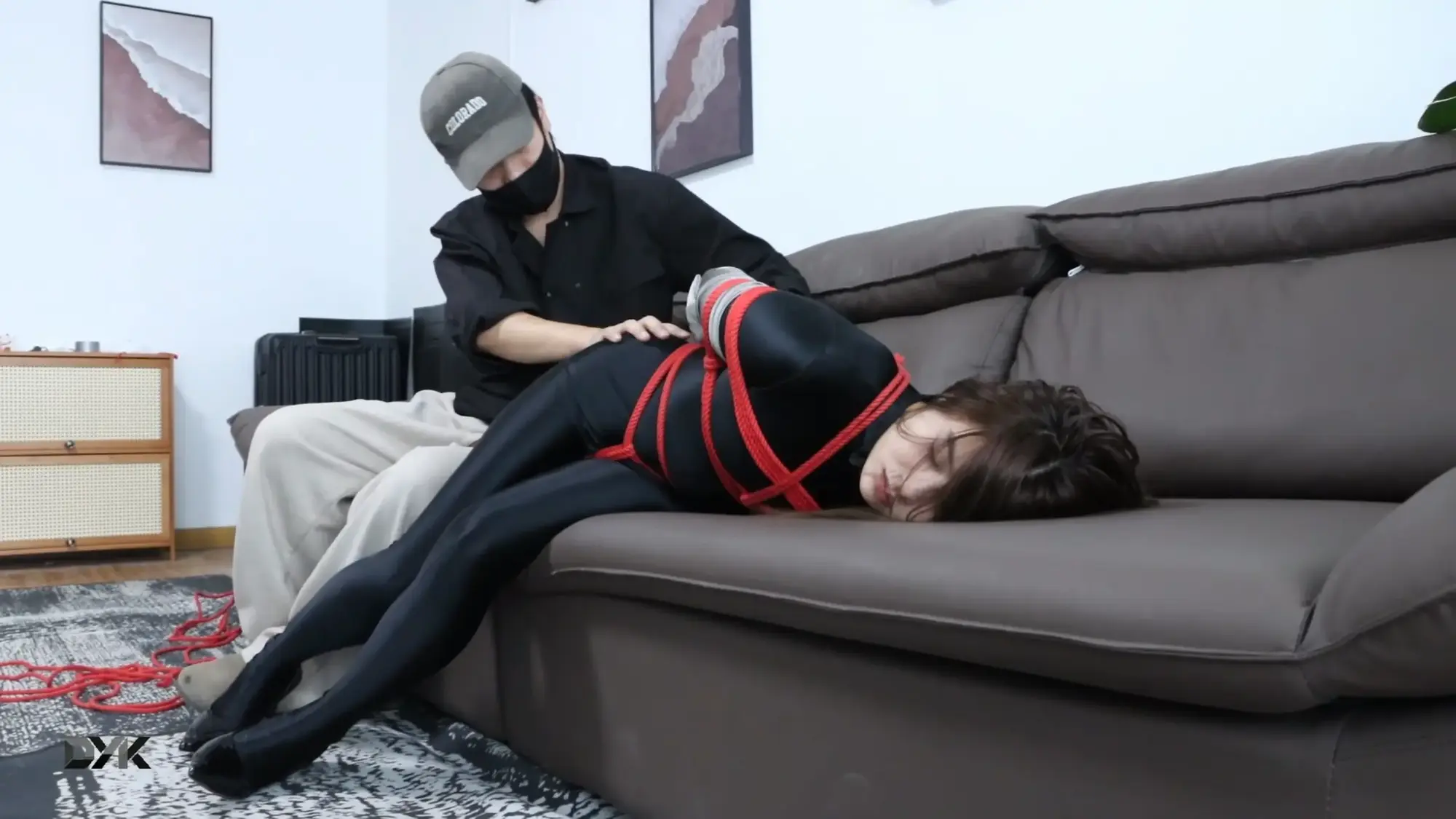 希希身着黑色莱卡紧身连体衣,潜入得意客家里薅羊毛,但是等她的是捆绑和玩弄!