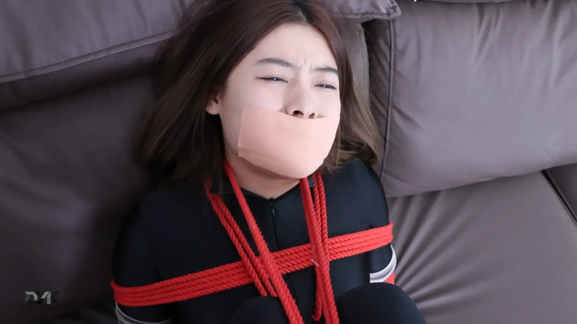 【逍遥】希希黑色紧身连体衣潜入得意客家薅羊毛惨遭捆绑装箱!《尤物收藏夹·希希·抓到小偷就装箱》