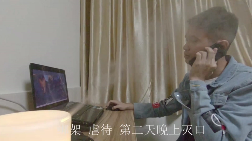 小女孩在家玩手机的过程中,阳台忽然传出动静,却不料背后伸出一只手。