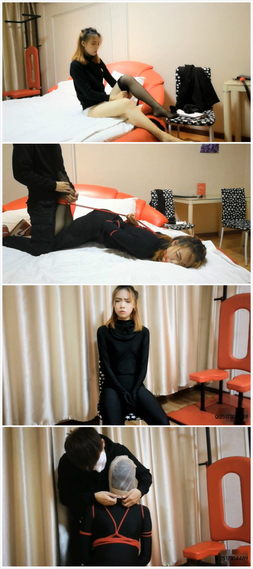 【时间煮雨美束论坛】《入室捆绑zentai窒息》漂亮女孩迷昏捆绑调教,全包紧身衣zentai塑料袋套丝袜窒息。