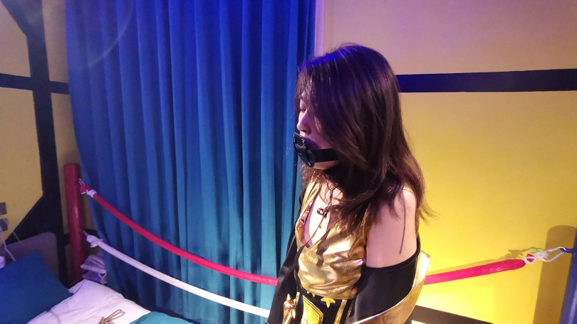 口含假YJ口塞不断在口中抽查,并让其用ZD棒自己刺激,呻吟声不断。。。